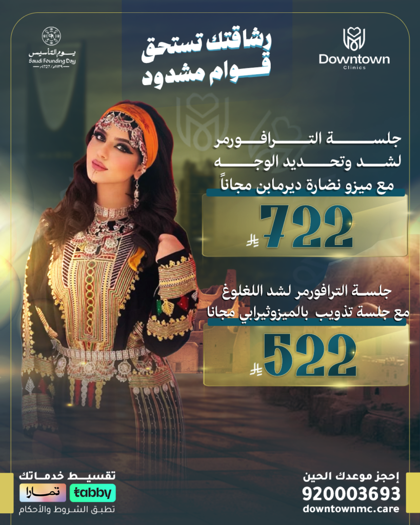 جلسة الترافورمر لشد اللغلوغ مع جلسة تذويب بالميزوثيرابي مجانا — 6,22 ر.س (بدل 8,500 ر.س)